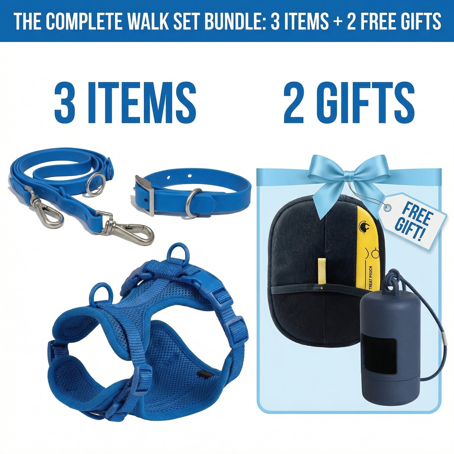 Stop mixing random collars and leashes.Get the complete walk system designed for comfort, control, and a clean look.